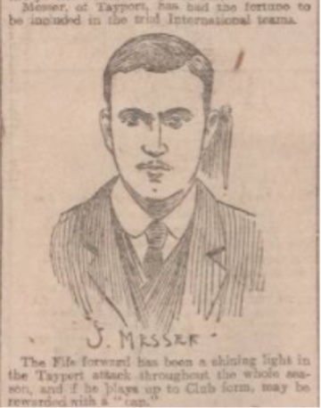 Messer’s star quality didn’t go unnoticed and he was selected to played in a Reds v Blues Scottish Junior International trial at Kilbowie Park, Clydebank. Apart from Tayport’s Messer and Kelty Rangers’ full back Inglis, all players were from Glasgow and West of Scotland clubs.