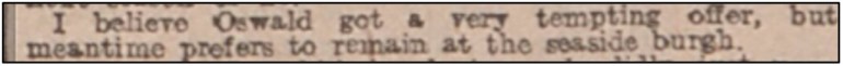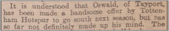 Even the bright lights of London proved no attraction for Oswald who turned down a move to Spurs and ultimately signed for Dundee FC. where his promising career was curtailed by a bad injury