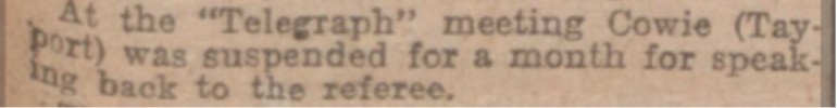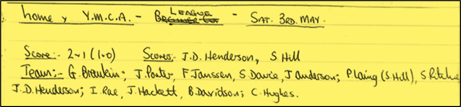 - A committee meeting minute noted that manager Waddell, secretary Oswald and player McLaren had all been booked by referee G.McGillvray at the previous day’s match at Harris FP. It was agreed the secretary should have an informal word with Association secretary Mr Elder…
