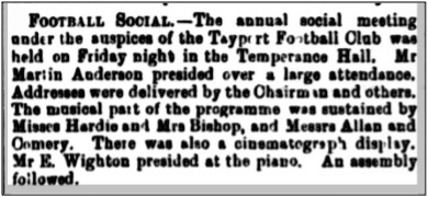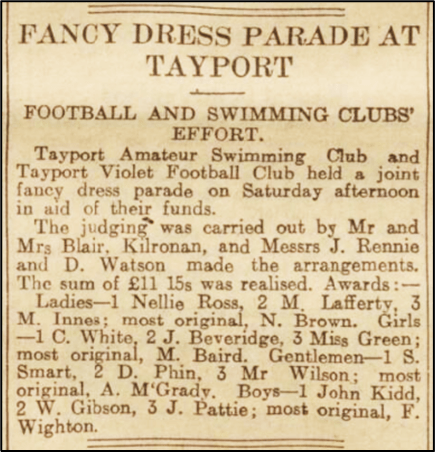 Two weeks later at Tayport’s Annual Athletic Gathering on the East Common, Tayport’s footballers dominated the track events as well as winning the 5-a-sides.