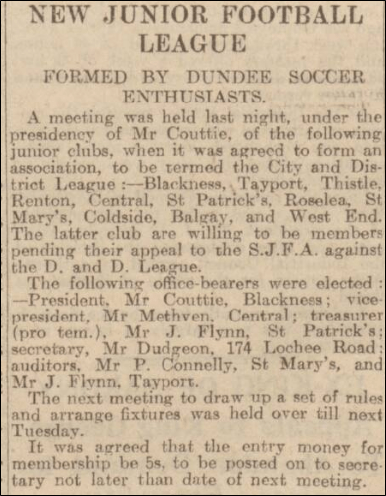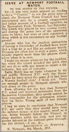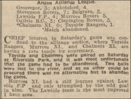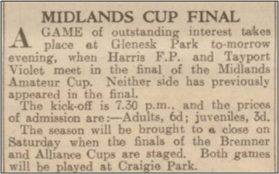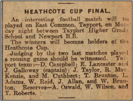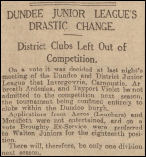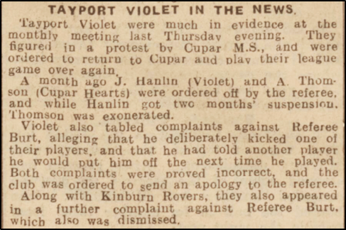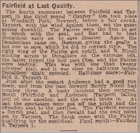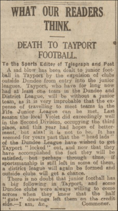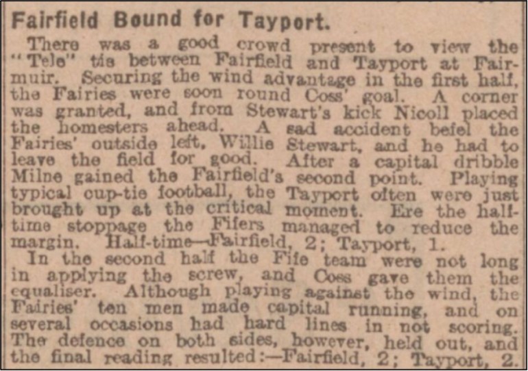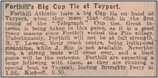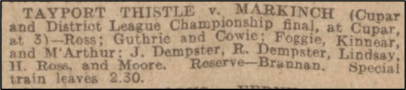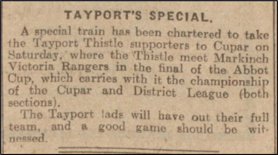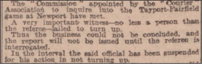 It was subsequently reported that ‘the Tayport lads flatly declined to cross the county and no East Fife final is to be fought this year’.