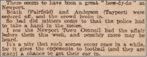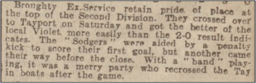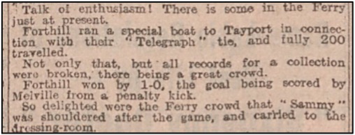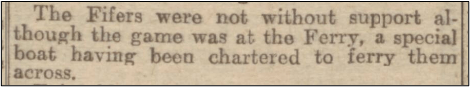 In addition, it wasn’t unusual for Tayport teams to sail across the Tay for matches with Broughty Ferry sides. Indeed, on one occasion in 1907 they went further as the press reported: