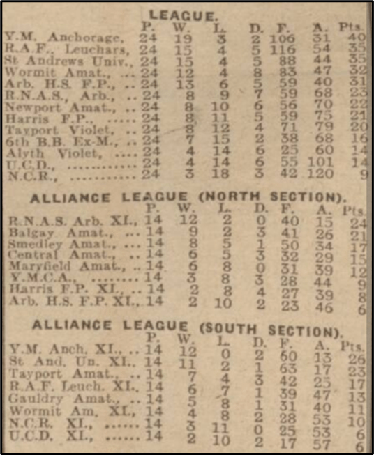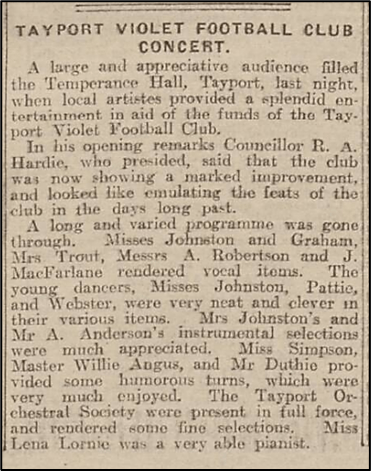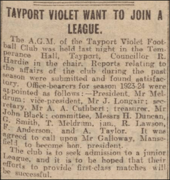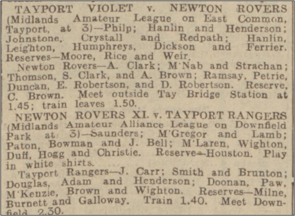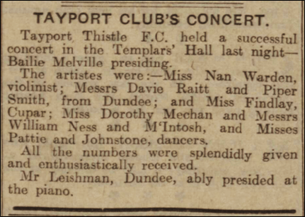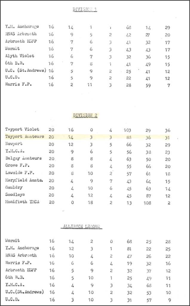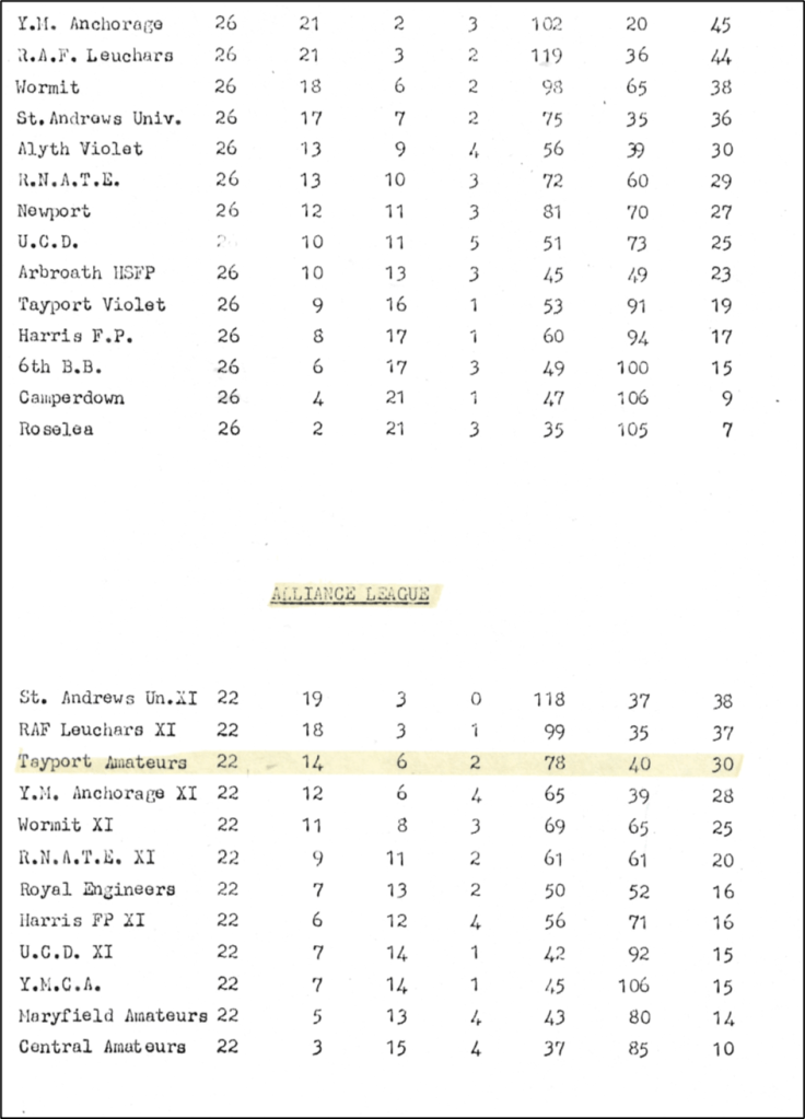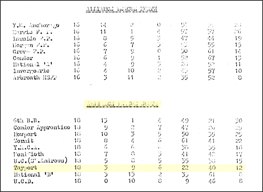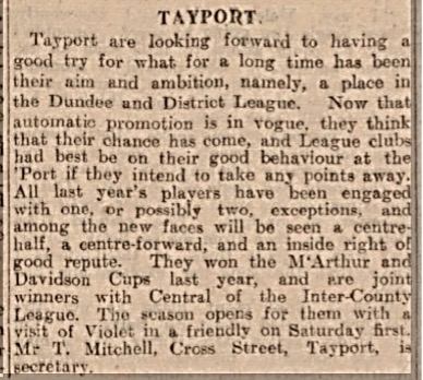 In press coverage of this season, Tayport were variously given the appendage, ‘United’ and ‘Athletic’ but the three were one and the same club.