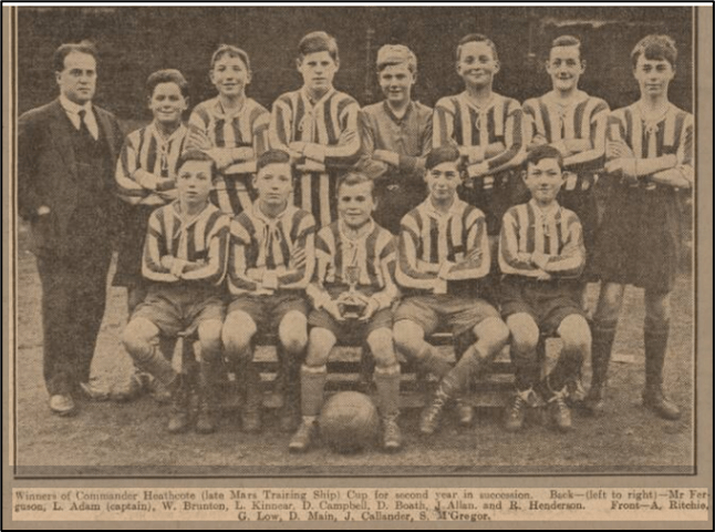 It was a season in which Red Star FC (Tayport) competed with Dundee based clubs in 2nd Class Juniors games. There was also a different Armitage Cup in which an occasional Tayport team, Tayport Violet, competed. There is a record of this Violet team playing in this Armitage Cup final at Waterstone Crook, Newport against the Mars FC. No, not Peter and Jimmy’s team or a team from a factory which made chocolate bars but the boys from the Mars Ship* anchored off Newport. “A hard and fast game was witnessed and the Mars, by better combination, ran out winners by 3 goals to 1, thus taking the cup for the first time on board the ship”