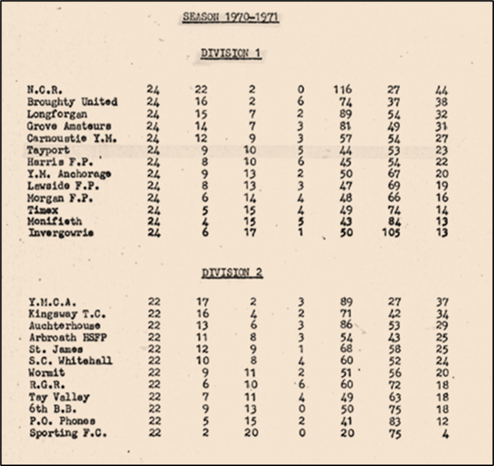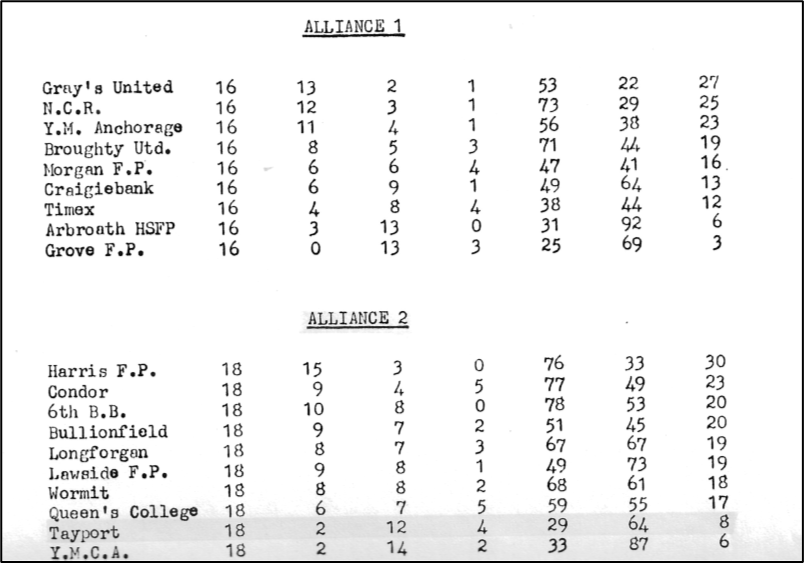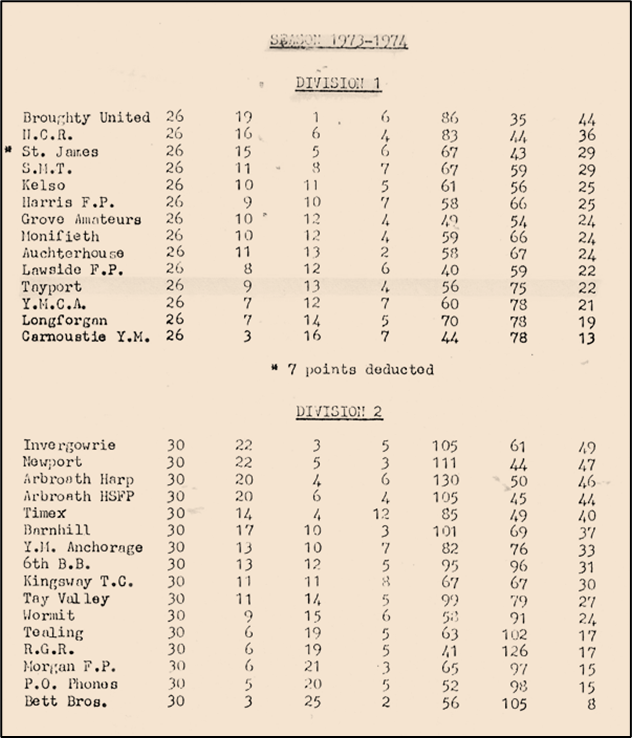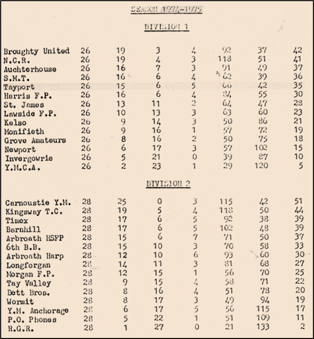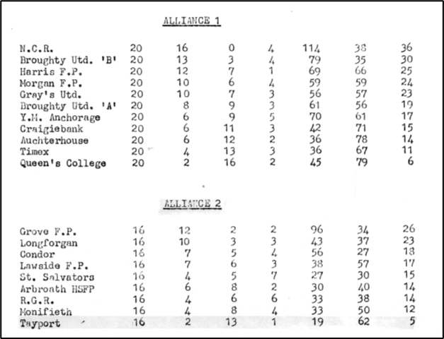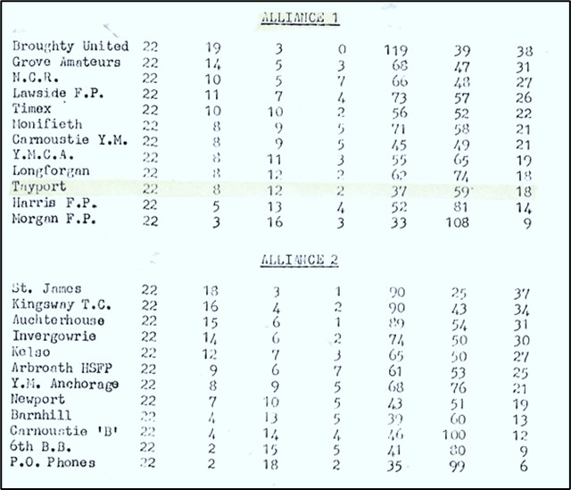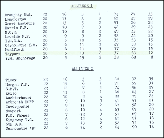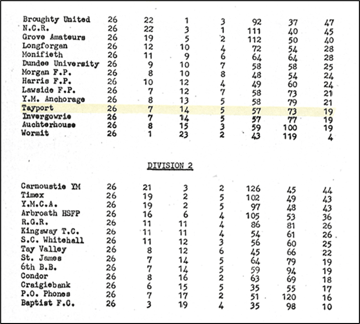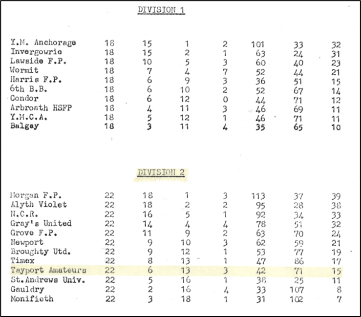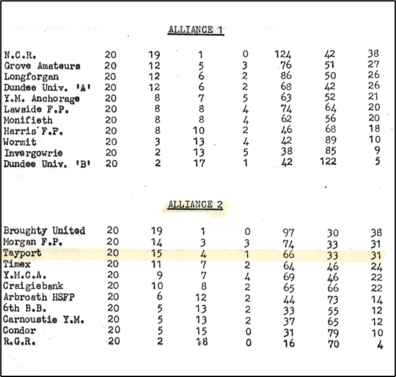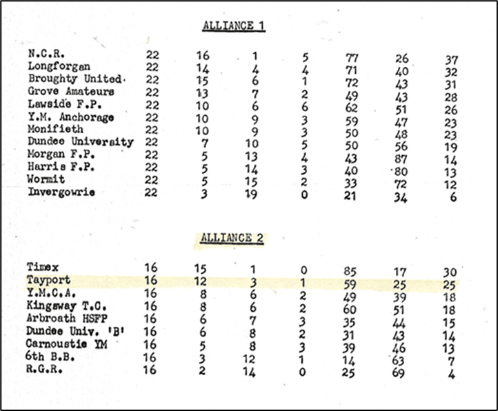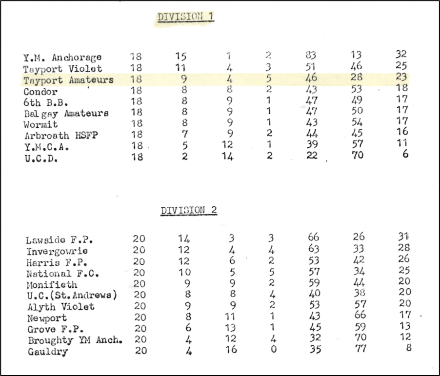 Since promotion in 1969, progress had been slow but steady and by the mid -1970s, Tayport FC had become established as one of the leading clubs in the Midlands AFA and the momentum continued this season