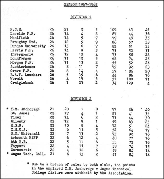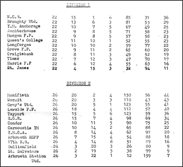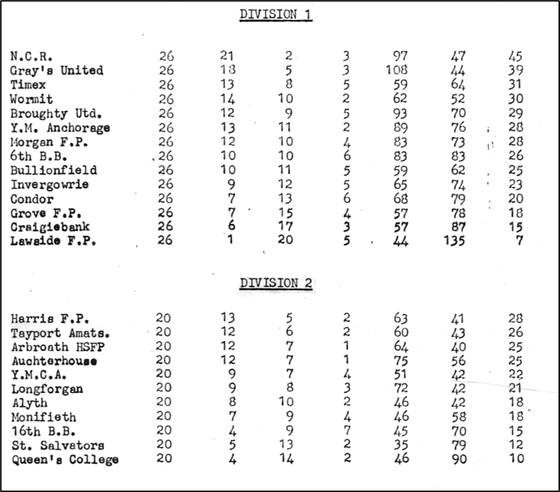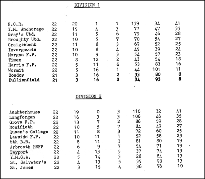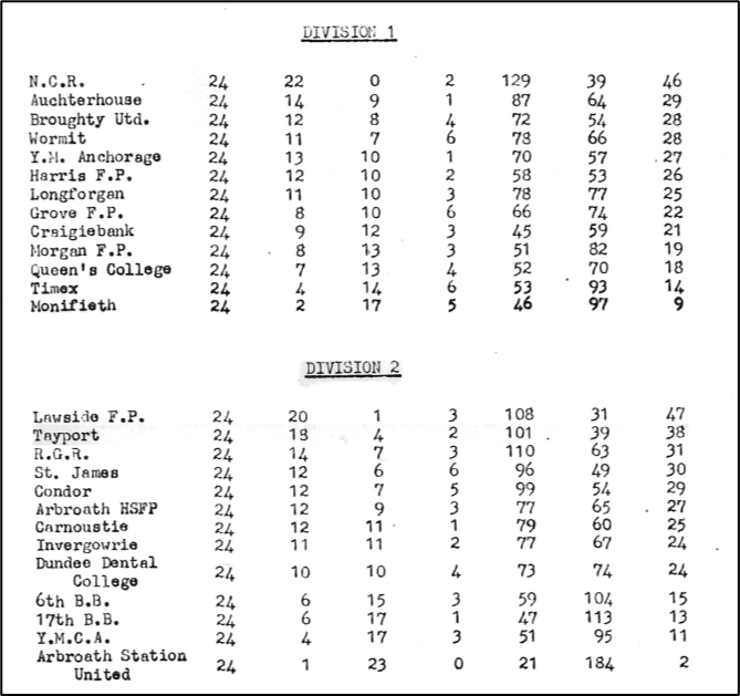 Top scorers were Ian Rae 10; Doug Henderson 9; Stewart Ritchie 9.