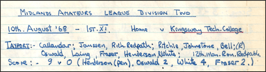 Top Scorers: Gordon Hughes 9, Ian Howe 6, Brian Burchell 5.