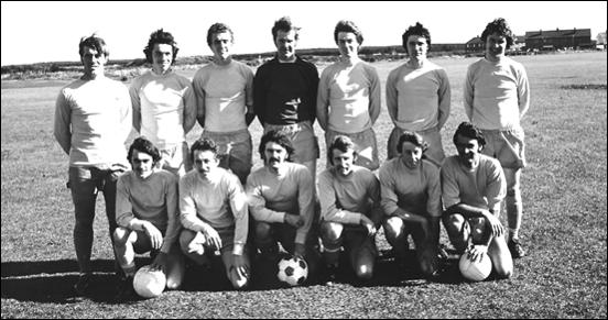 Tayport pictured on 13 September 1975 on what would be the Canniepairt pitch, prior to a league match v Kelso. Tayport won 7-0 with goals from Ritchie (2), Hughes, Doug Henderson, Dandie, Scott and Howe.