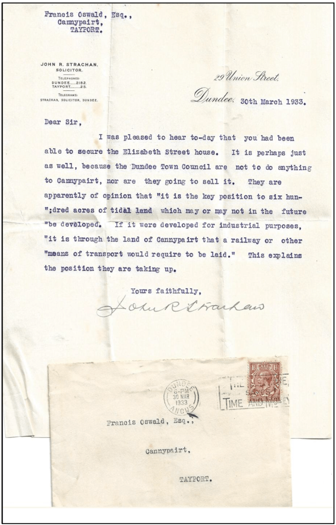 In 1933, however, Dundee Council would not agree to extend their lease nor sell to the tenants, advising that they had plans to develop the area for industrial use, thus ending a 58 years family connection with the farm. (see letter below)