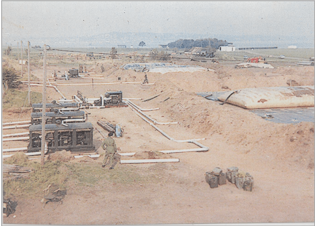 Polex 70 was a huge and complex bulk fuel supply exercise which involved the RAF, Army Engineers and Royal Navy laying a pipeline from the Royal Fleet Auxiliary tanker ‘Green Rover’, berthed in the Tay off Tayport, to RAF Leuchars via the former railway track. This pipeline would bring in some 300,000 gallons of aviation fuel for on-shore storage tanks. To build this light weight rapid construction facility for storage, the Engineers required a suitable location and the Canniepairt ticked all the boxes.