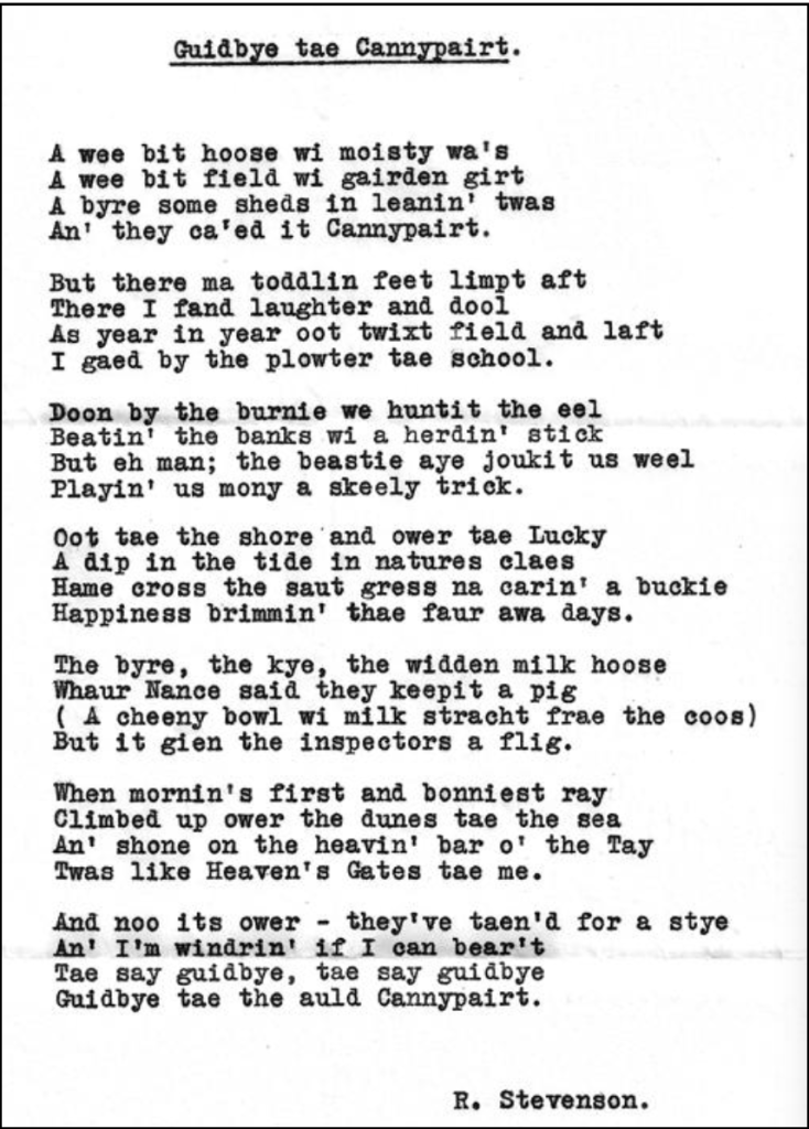 An ode written to bemoan the end of the Canniepairt as a farm