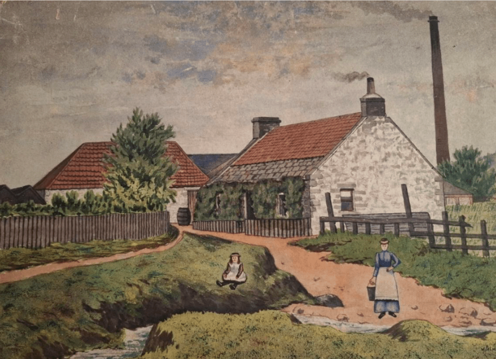 1893 painting of the Canniepairt farmhouse and steading by V.Palmer