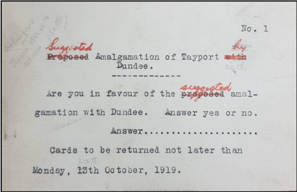 By December 1919 though, it seems that Dundee had changed its mind and informed Tayport Town Council that the vote would not go ahead. The reasons for this are unclear.
