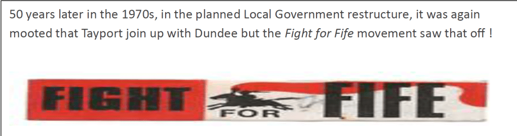 Perhaps Dundee felt that they already had enough on their plate and didn’t feel they would get the support they needed in Dundee. So, Tayport remained in Fife and Dundee didn’t get to stretch across the water.